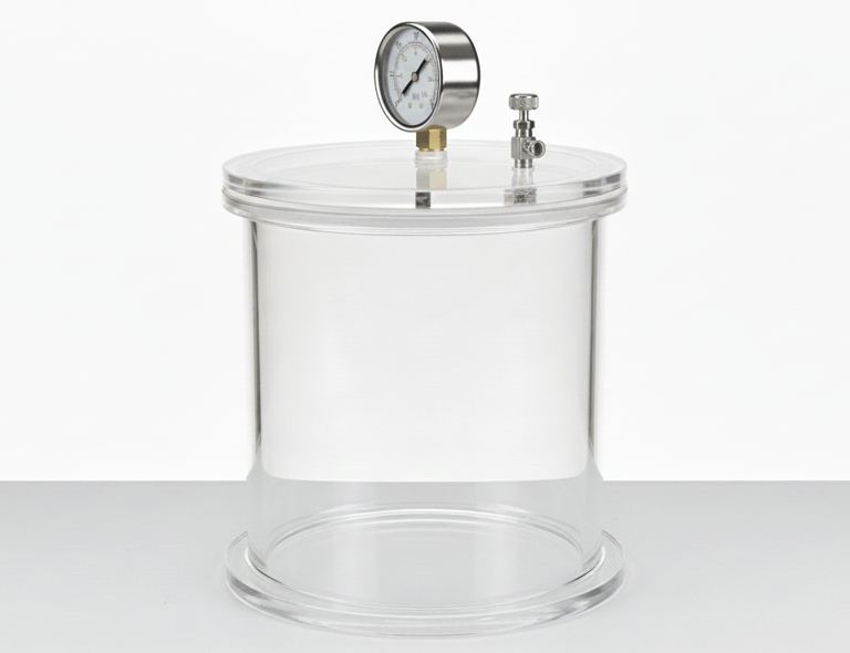 Our Acrylic Vacuum Desiccator provides a reliable, airtight, and cost-effective solution for moisture-free storage and drying of sensitive laboratory materials. Designed for benchtop use, it combines high transparency, durable cast acrylic construction, and efficient vacuum operation to protect samples from humidity exposure and environmental contamination.
