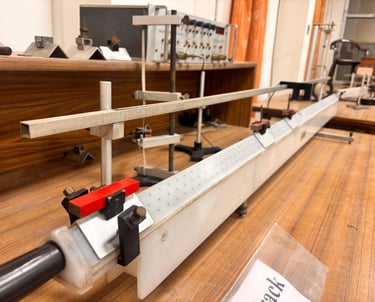 It demonstrates the concept of friction reduction using an air cushion between a V-shaped track and gliders. It enables near-frictionless, one-dimensional motion, helping students explore principles like elastic collisions and interaction at a distance using magnetic repulsion — ideal for understanding real-world physics in action.