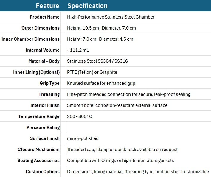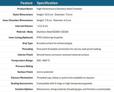 Prayan Innovation designs and manufactures custom stainless steel chambers for laboratories, research, and industrial use across India. Built from high-grade SS 304/316, our chambers ensure corrosion resistance, strength, and long-term durability. We offer vacuum and pressure chambers with options for custom ports, gauges, and viewing windows. Each unit is precisely fabricated for chemical, thermal, and mechanical stability, making it ideal for testing, chemical processing, and electronics applications.