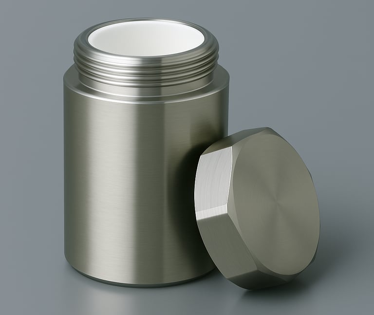 Engineered to house PTFE (Teflon) inner chambers, the stainless steel body provides structural support and pressure containment, enabling safe and controlled chemical reactions. Its fine-pitch threaded sealing system, combined with compatible O-rings or high-temperature gaskets, allows the chamber to function efficiently as an autoclave reactor for elevated temperature and pressure operations.